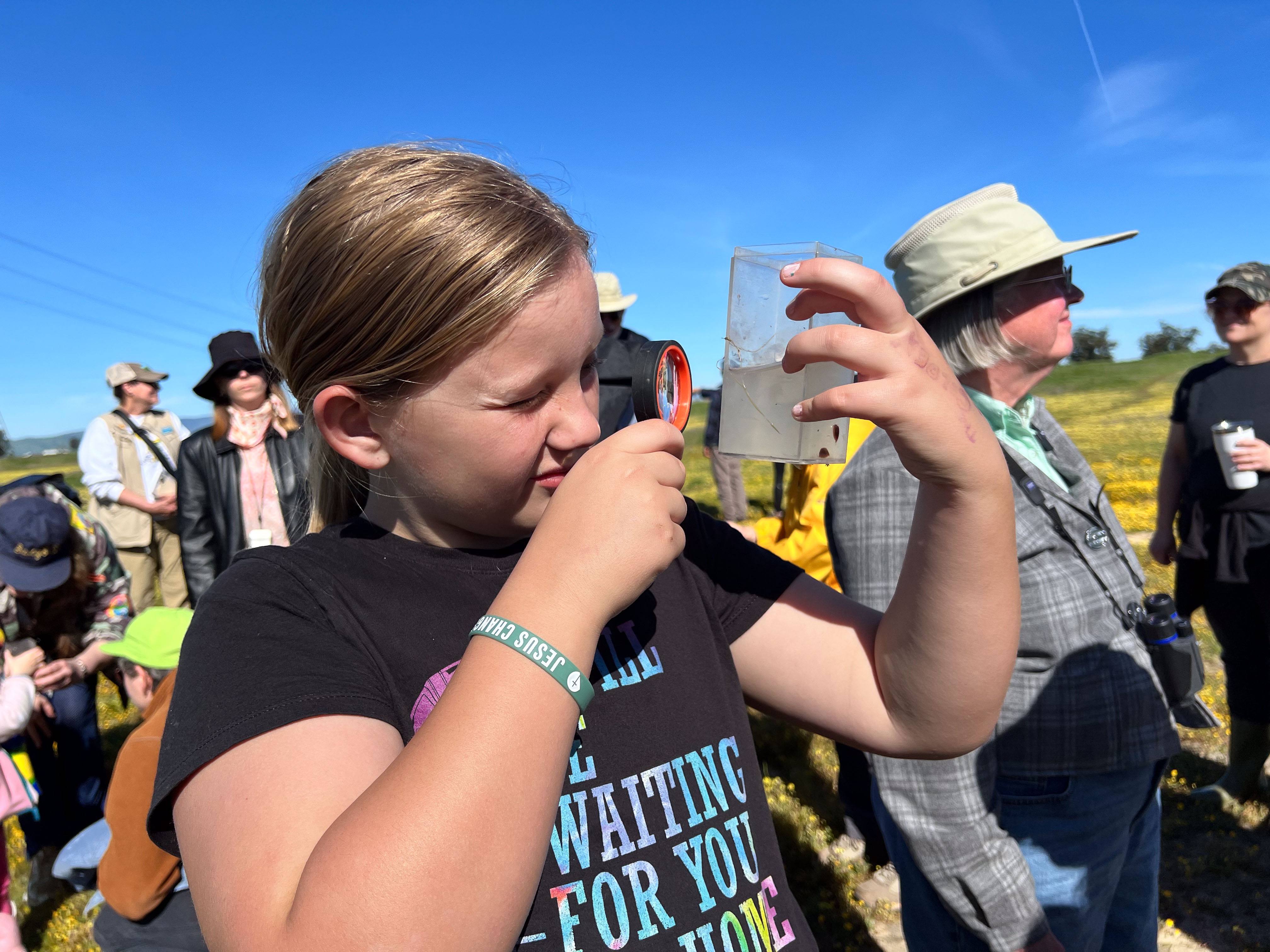 On the Sunday of the kids’ visit we went to Jepson Prairie for a docent-led walk through the reserve. The docents scoop aquatic creatures from Olcott Lake prior to the tours and share the containers with the public.