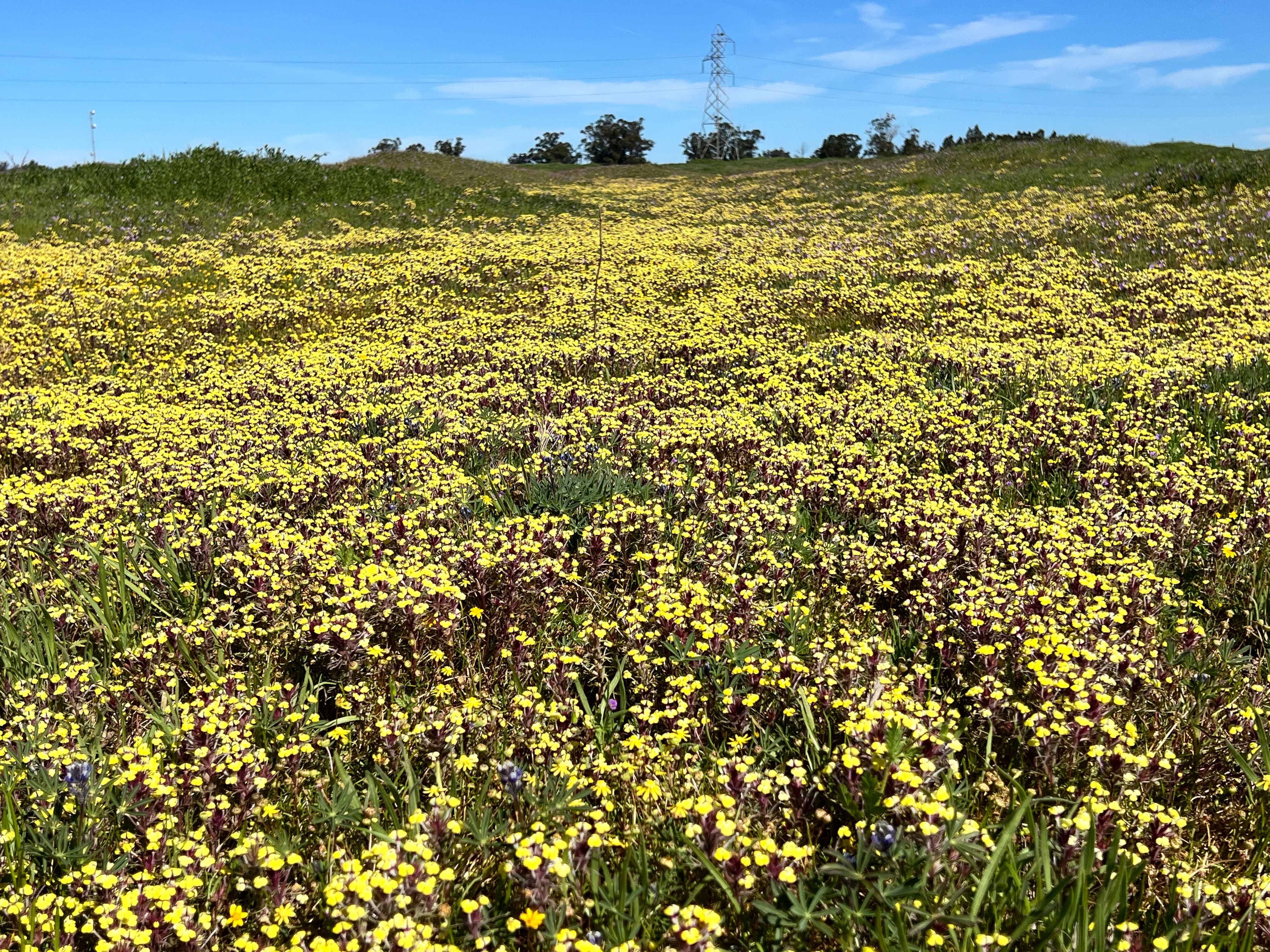 The view to the south shows Mt. Diablo which features prominently is my photos take Across the Road. The clumps of flowers are California Golden Violet.