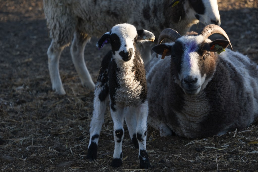 The last lambs of Lambing Season, Part 1, were born two days ago, March 31. Part 1? That’s another story, but there may be four ewes due to lamb at the end of April. This is Tamara with two ewe lambs, #2553 and 2554.