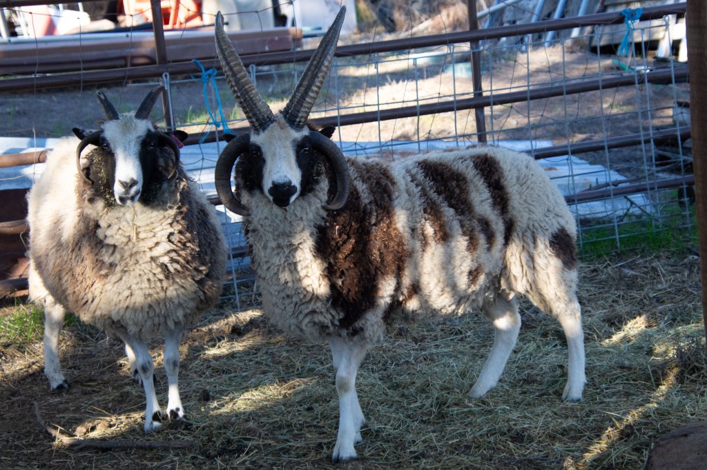 This photo features Jade and Sparky. I can tell that Sparky will someday replace Jade as the farm’s most friendly sheep.