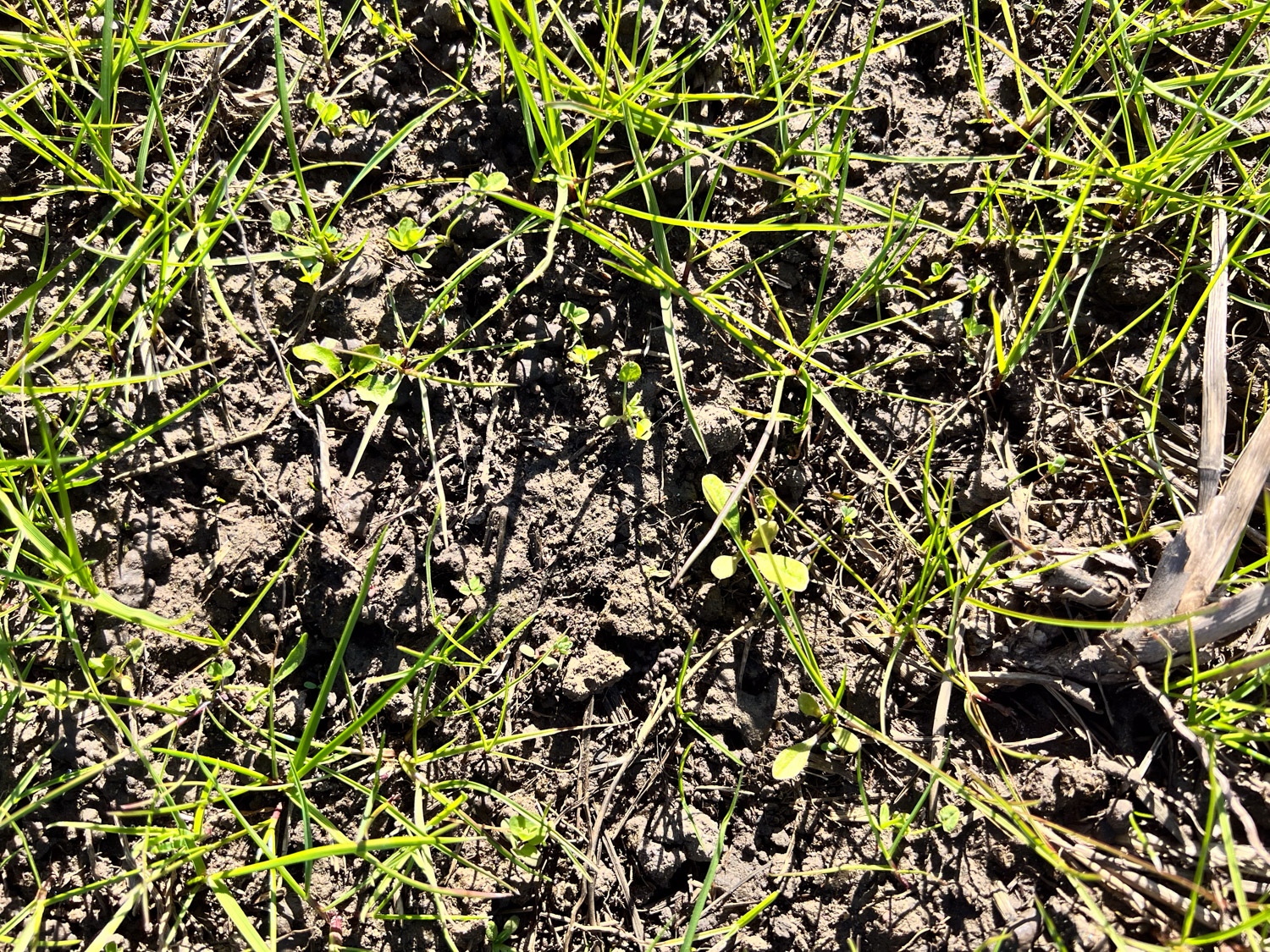 There is plenty of clover and trefoil, but in some of the areas it has been overshadowed by the annual ryegrass. That is another challenge. Annual rye was NOT part of the seed mix. There were three perennial grasses in the mix, but the ryegrass that was already in the soil took over. Fortunately it is a good feed, but it grew so quickly that it has been a real challenge to manage. This paddock is one that Dan topped with the mower several weeks ago and the clover is more visible here.