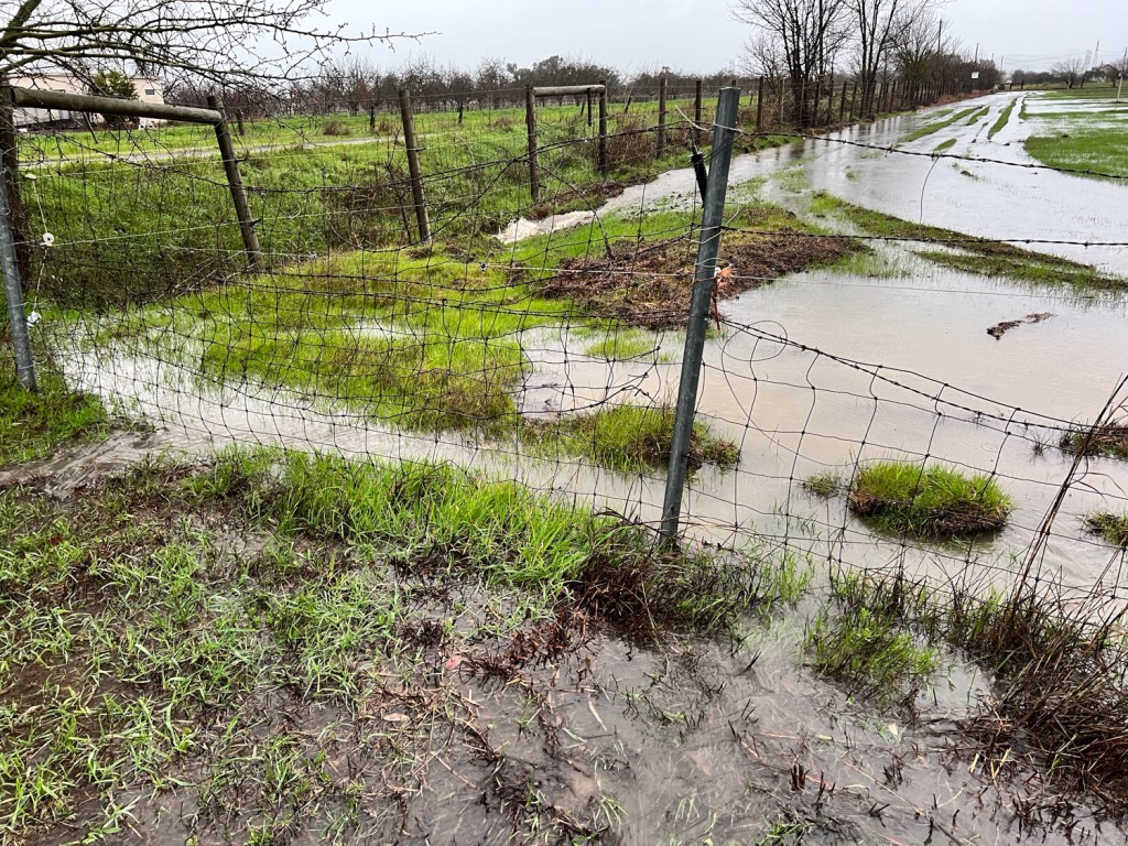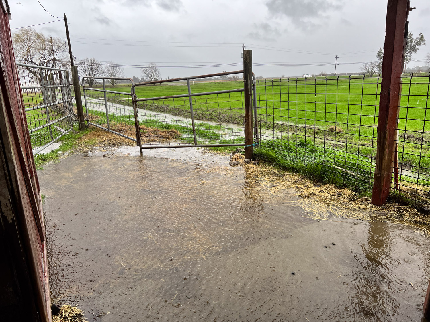 This is yesterday’s photo. I have numbered all the checks from west to east so I can keep track of what I’ve been doing. They are 30′ wide. We started grazing this spring with the paddocks in the north field. This is the previous post about that before I went on to the first irrigation. When we switched from grazing the north paddocks to the south ones we started with fencing two checks at a time and the idea was to split into smaller areas with cross fencing.