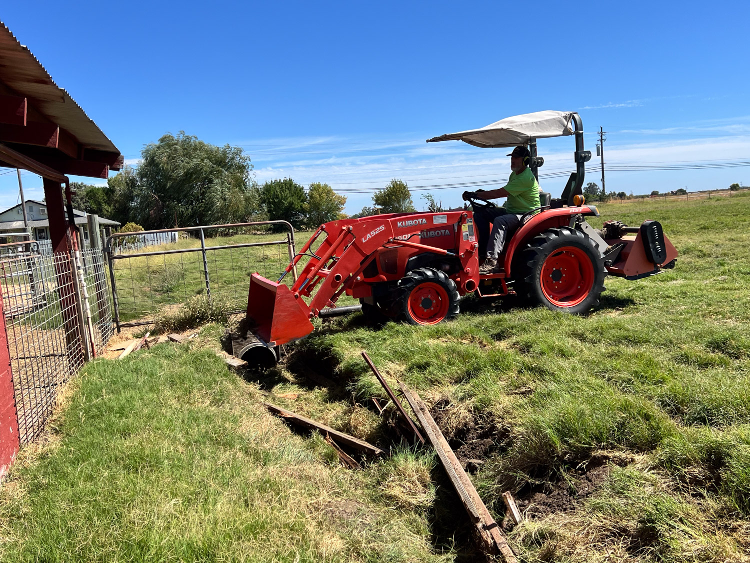 There was still more work for us (Dan) to do. Here he is removing the wood and stakes we had used to make the ditch more functional near the barn and taking out the culvert.