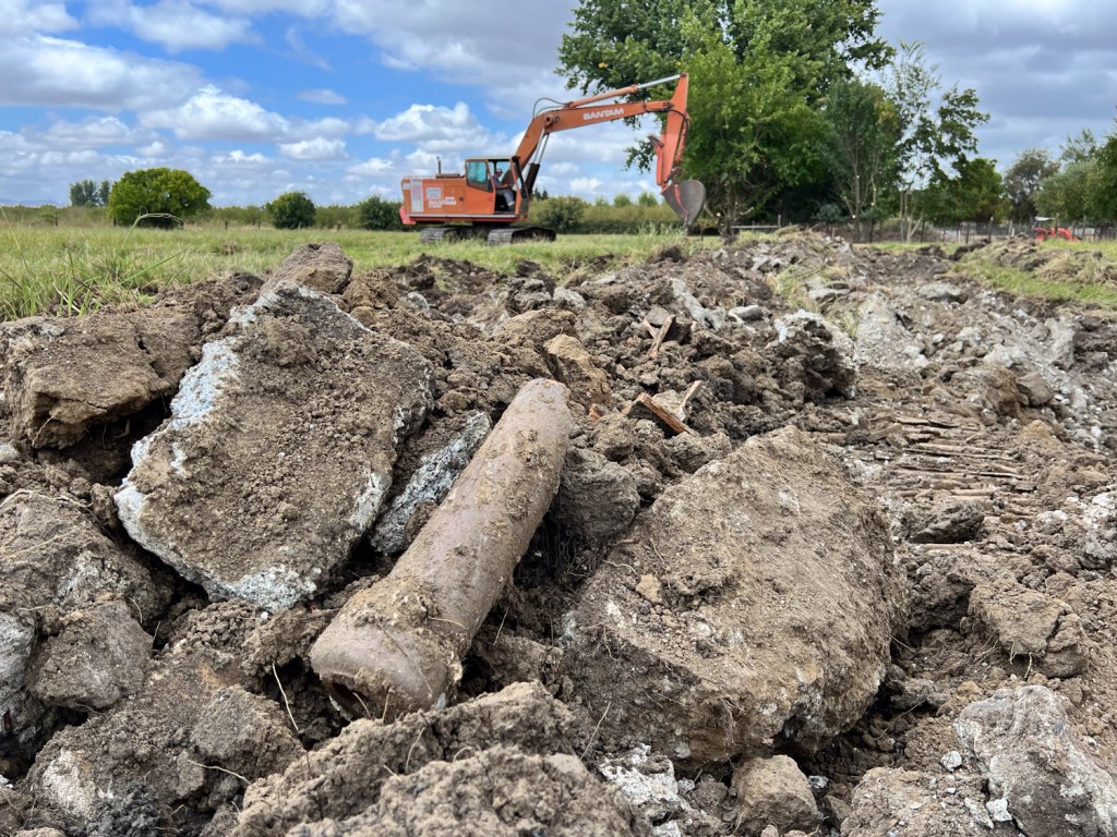 Brett used the teeth on the track loader to rake through the dirt and find the concrete chunks.
