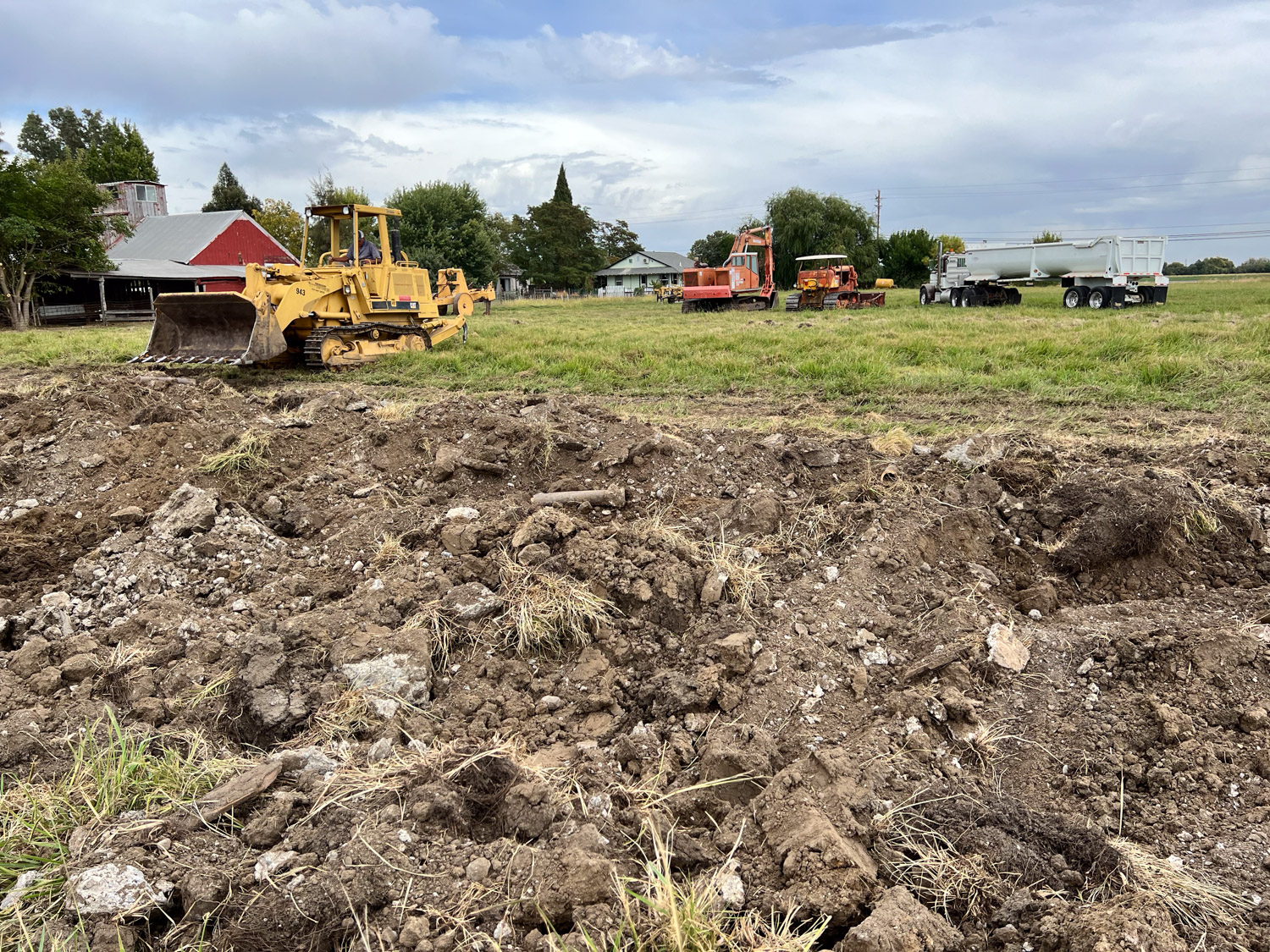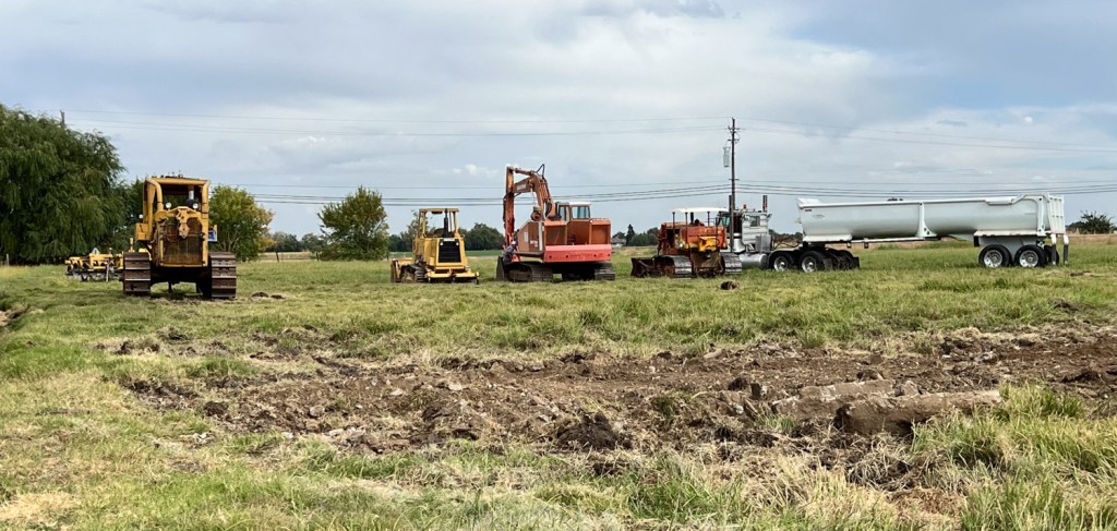 The first job was to remove the old cement foundation that ran north to south over 3/4 of our property. We suspect it was the floor of an old barn–I don’t know what else it would have been. That would have been a big barn and maybe someday I’ll be able to talk to a local history buff who knows what this was. It doesn’t really matter–it’s just that we have always had to work around it. Part of it was broken apart to put the original irrigation ditch through and, even though grass will grow on top in the winter, it dries out in summer and the desirable pasture plants don’t grow there. NRCS calls this job “obstruction removal”.