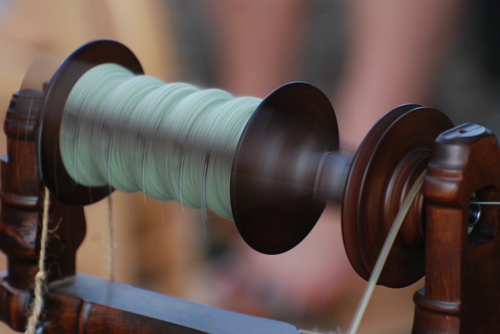 Eventually he was able to spin mostly by himself. (That full bobbin is mine however–I just let him add to it.) His family was showing sheep and he was glad to hang out with the rest of us who were spinning.