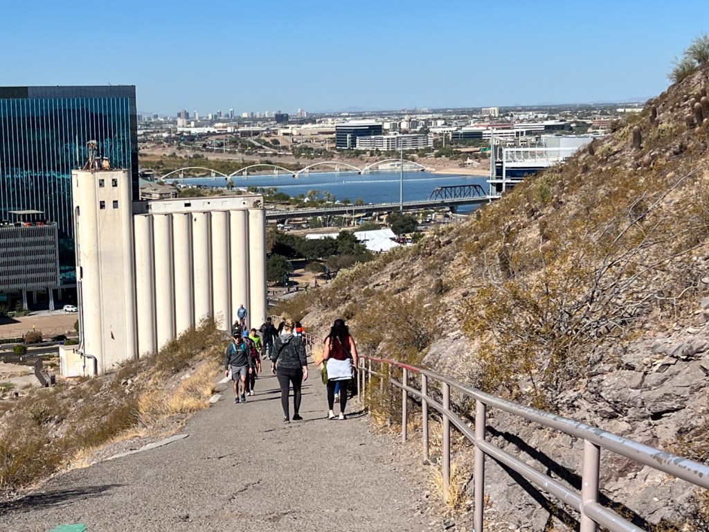 It was time to climb the hill…because it was there. There was a sign that labels it Hayden Butte Preserve and the Leonard Monti Trail. It is also known as “A” Mountain for the 60-foot gold A painted on part of it that we did not see from our view.