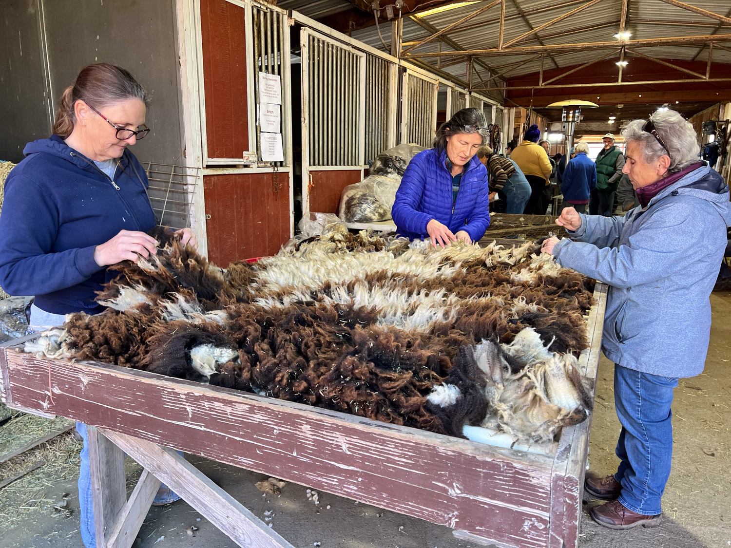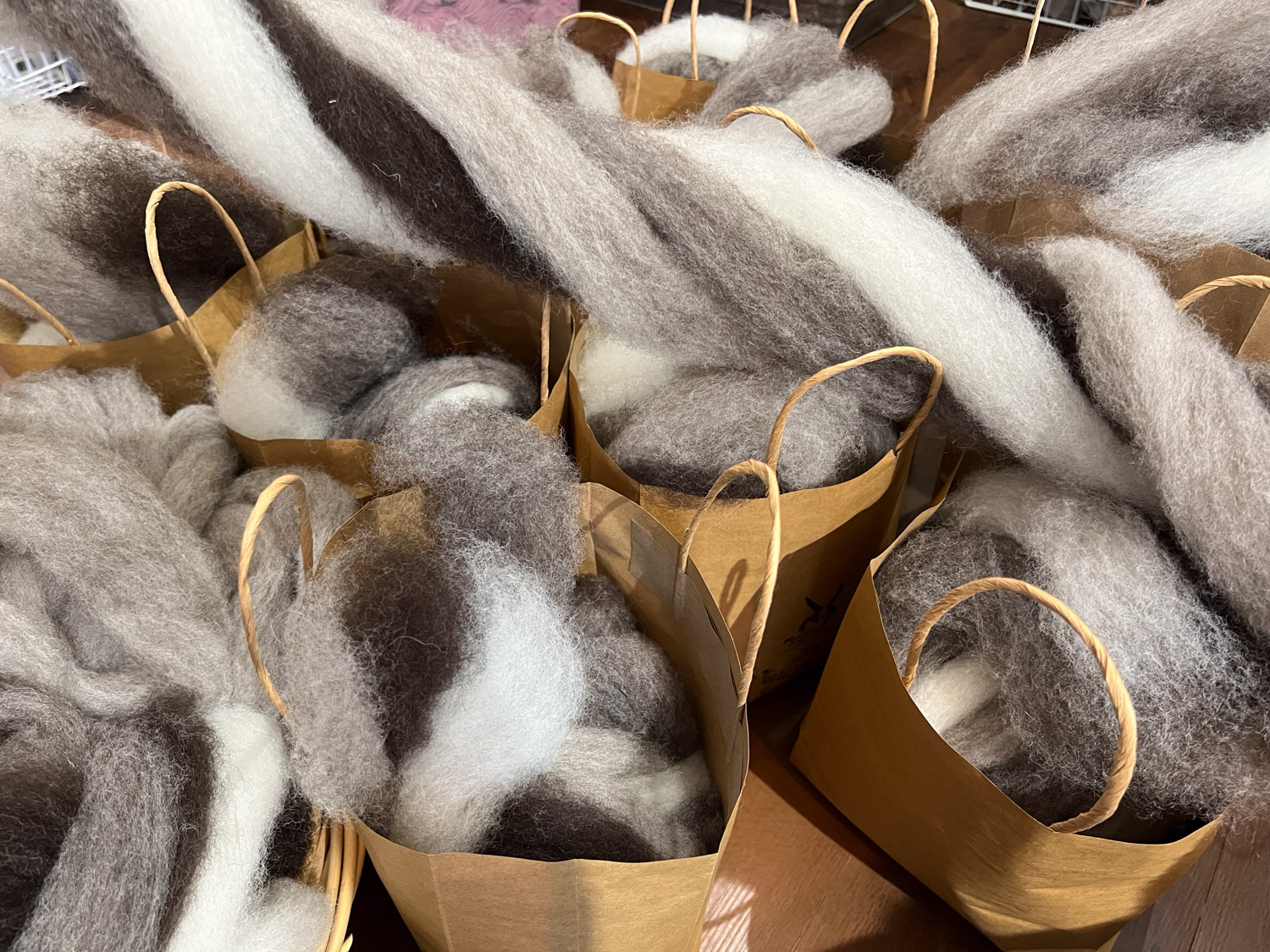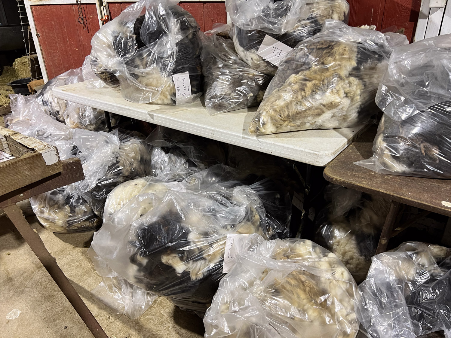 1. The fleeces are free of VM (vegetable matter) which could be stickers, seed heads, etc from the pasture, but our pasture doesn’t have any of those. Alfalfa is our most likely VM, and is great to spin a fleece that is completely free of that.