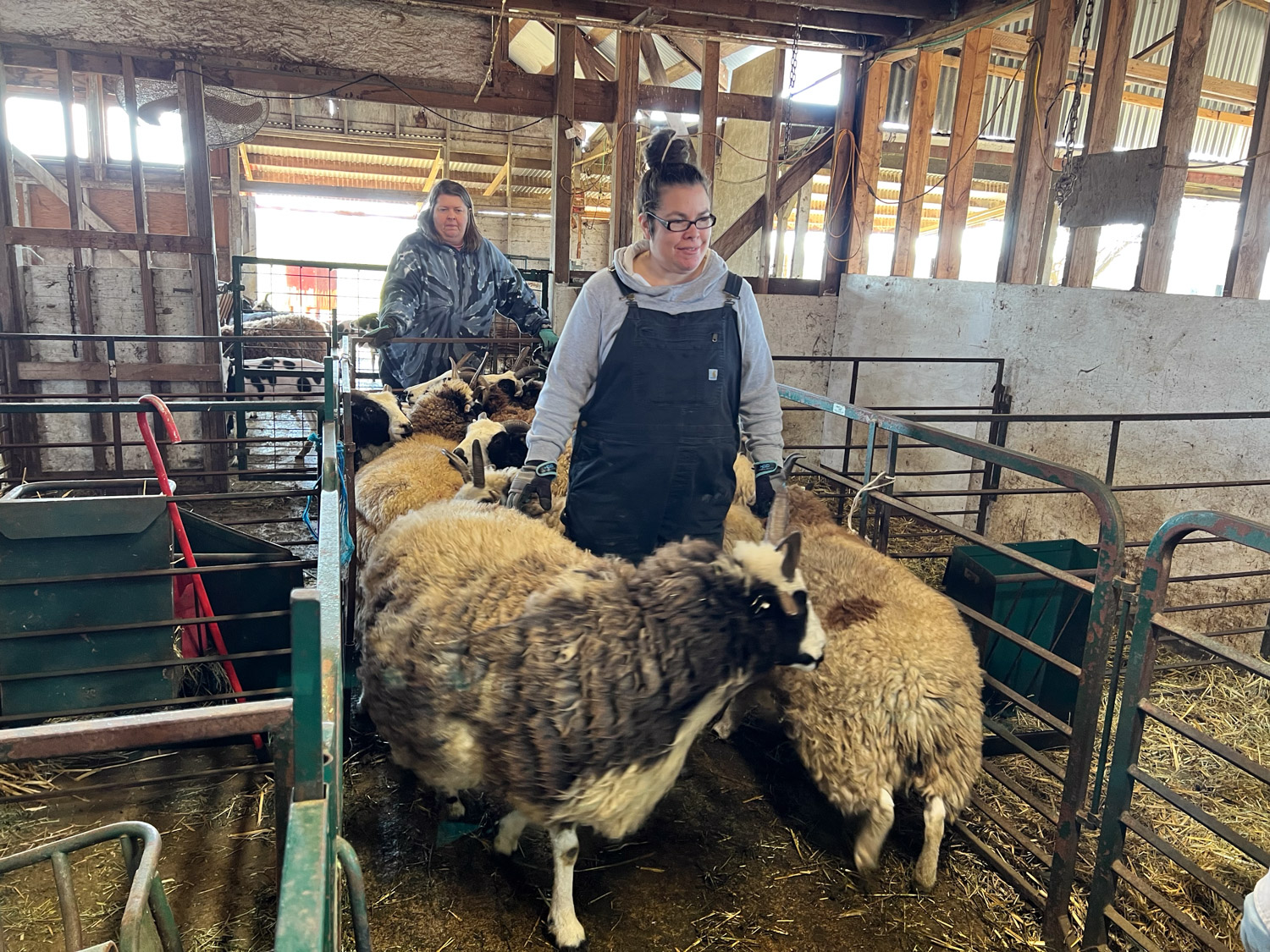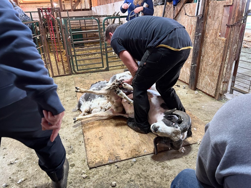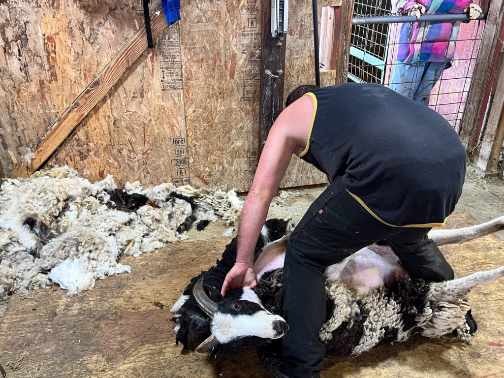 1. The fleeces are free of VM (vegetable matter) which could be stickers, seed heads, etc from the pasture, but our pasture doesn’t have any of those. Alfalfa is our most likely VM, and is great to spin a fleece that is completely free of that.