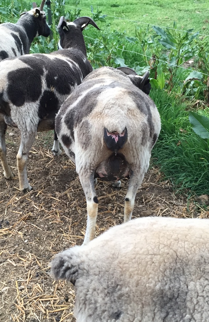 This is Jazz above and below. As I clicked send on the earlier email I realized that I said that I put her in the barn tonight. So you can’t vote for her. I don’t know that she’ll be next but I do think that she’ll have multiples and I’ll continue to put her in at night until she lambs.